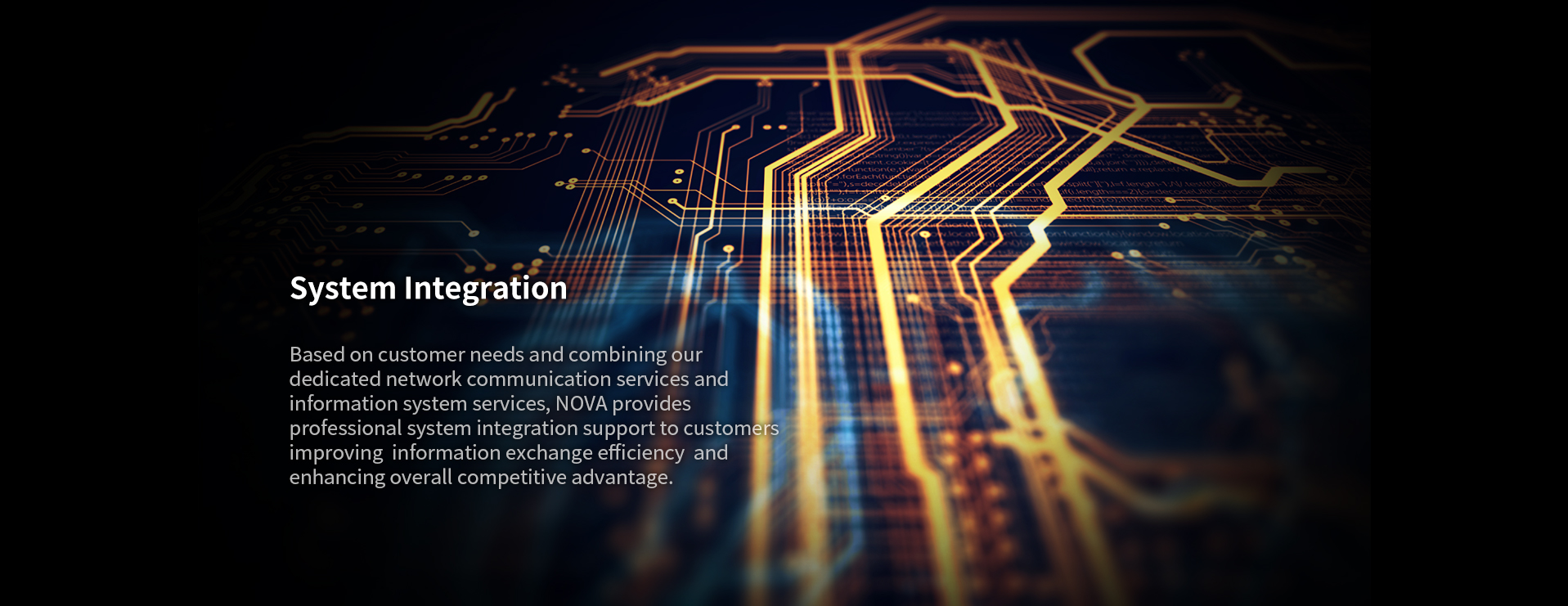 In 2005, NOVA was awarded the “Computer Information System Integration Level 1” qualification and became the leading computer information system integration service provider in China. At present, NOVA has obtained many professional certifications, including Computer Information System Integration Level 1, Information System Operation and Maintenance Sub-item, ISO9001, and ISO20000. NOVA has successfully provided high-performance information-based integrated engineering services to thousands of enterprises, government agencies, and institutions. It has accumulated a large amount of practical experience in project design, construction management and system maintenance. The service areas include infrastructure network, multimedia system, integrated cabling, network security, network monitoring, and storage systems. Combining the company's powerful enterprise dedicated network communication services with information system integration services, NOVA is committed to providing customers with converged ICT integration services.